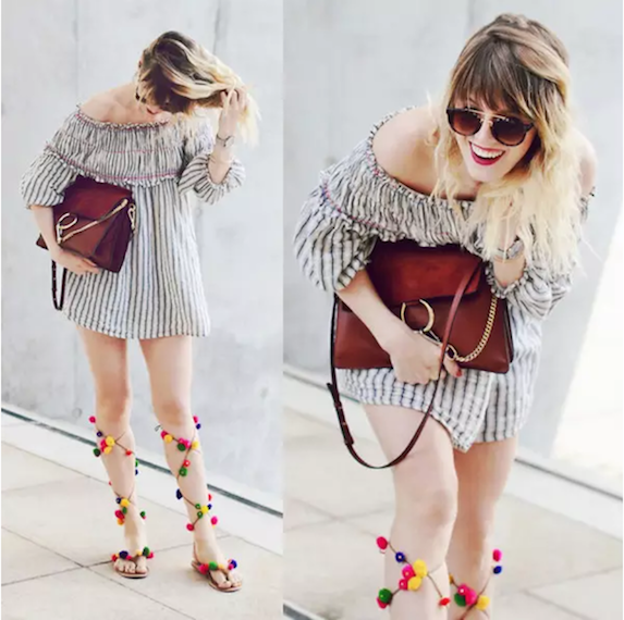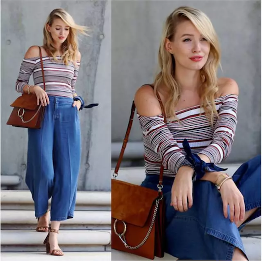 大号包包本身会显得人很短很矮,monki是不建议小个子女生背的,除非你像她一样会搭配。背带长短适中,高腰阔腿牛仔裤加上抹胸长袖条纹衫将下身拉长,并且上半身比例也刚刚好,超级会扬长避短。她的博客里还有超多搭配也很美哦~值得关注。