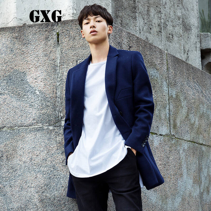 GXG男装冬季新品男士修身时尚藏青色长款羊毛大衣呢子外套男#64826010 藏青色 170/M