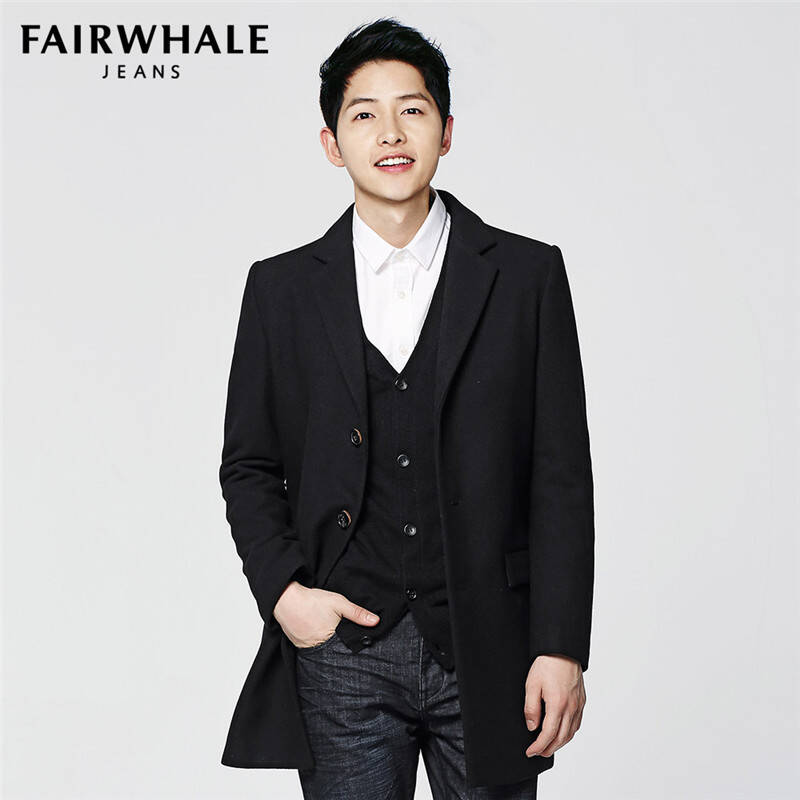 马克华菲毛呢大衣男 2016冬季新品西装领中长款羊毛呢子外套上衣男装7016A 311纯黑 175/92A(L)