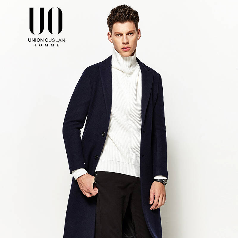 UO冬装新品毛呢大衣男中长款韩版修身羊毛呢子大衣外套 蓝色 54/XXL(185/100A
