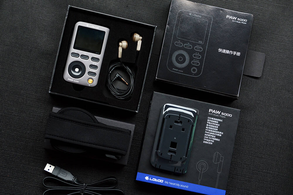 PAW 5000作为一款运动型的播放器,附件上十分丰富,运动臂带、播放器支架、Final Audio Piano Forte II 耳塞一对、USB3.0数据线,运动支架和臂带的组合让音质与便携得到完美结合。