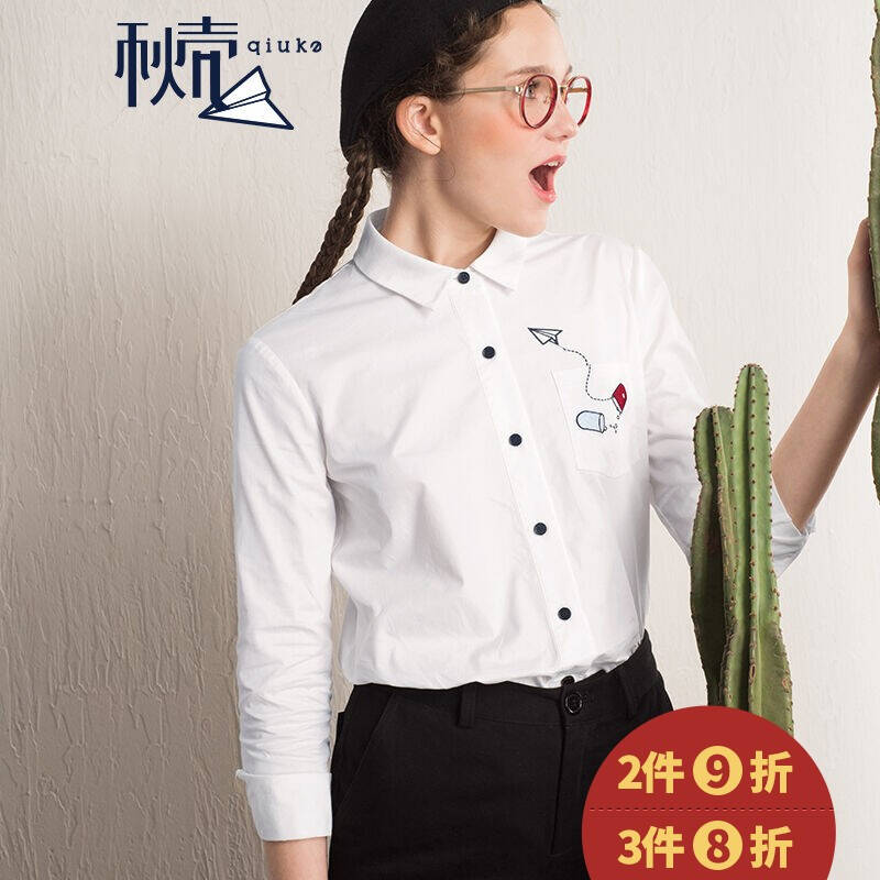 【3件8折】秋壳2017春装新款百搭宽松基础款衬衫1571011019 米白色 L
