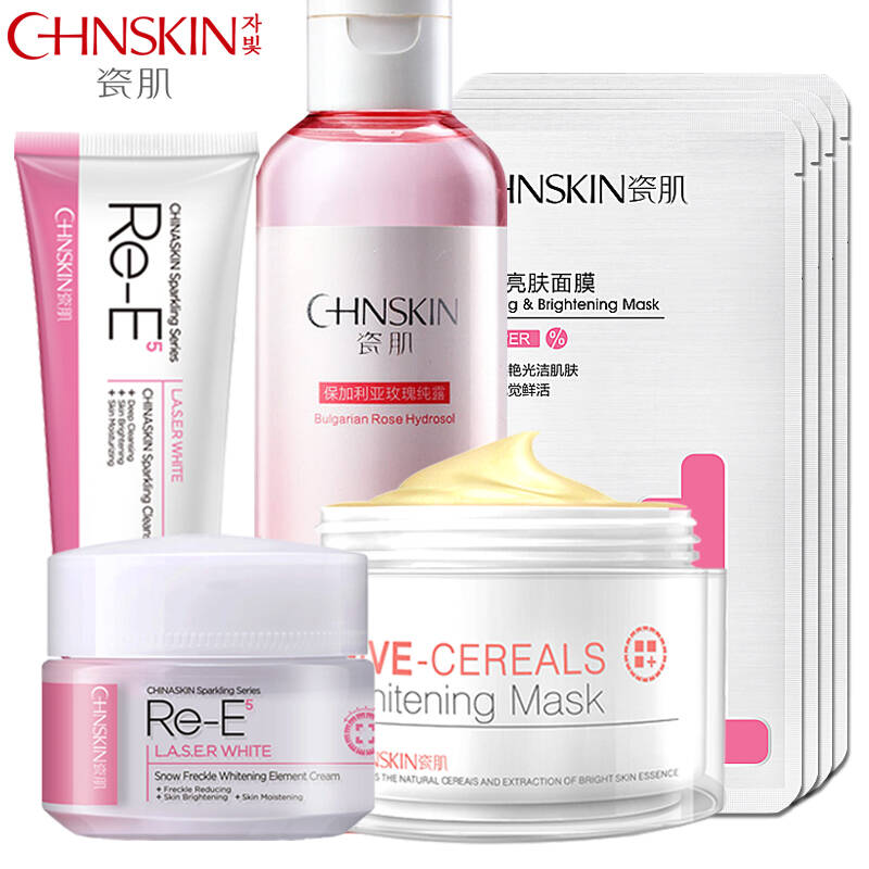 瓷肌御雪祛斑美白元素霜套装补水保湿去黄抗皱雀斑晒斑遮暇隔离护肤品套装水乳霜睡眠面膜CC霜 净斑5件套(洁面+水+面膜+去斑霜+面膜贴4)