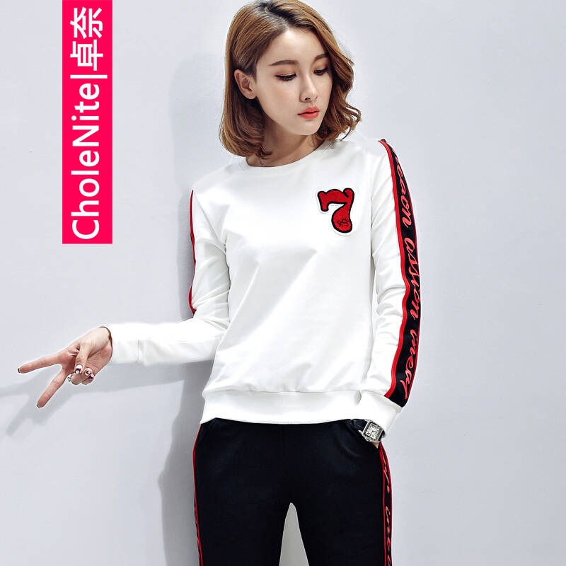 卓奈cholenite运动套装女春秋两件套2017韩版学生气质卫衣套头时尚显瘦休闲衣服卓奈 白色 M [建议85-102斤]