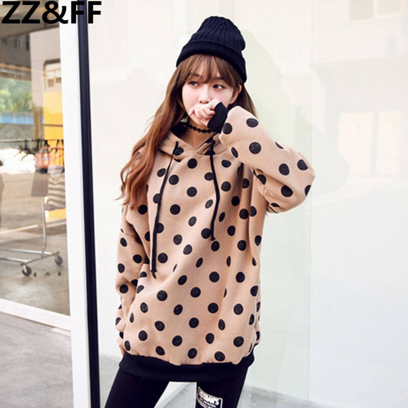 ZZ&FF 201春装新款韩版百搭宽松显瘦中长款拼色波点卫衣女 9960 咖啡色 均码