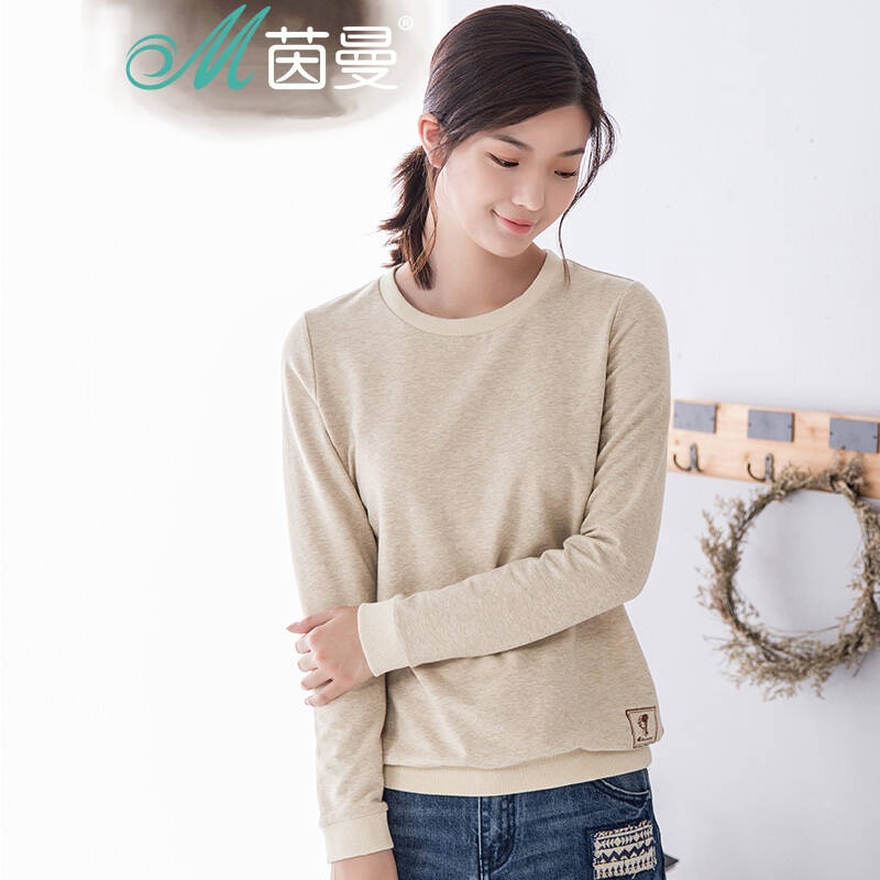 茵曼卫衣女简约螺纹拼接圆领长袖套头卫衣女外套【1864082644】 浅杏色 L