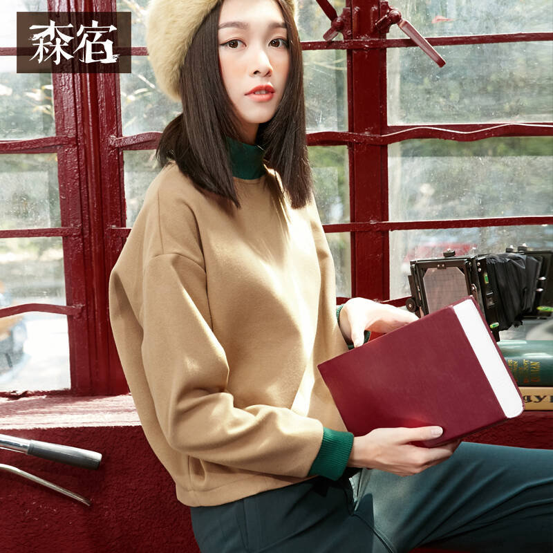 森宿B偏心设计师撞色小高领针织呢卫衣女套头2016秋 2644008 暖驼 M