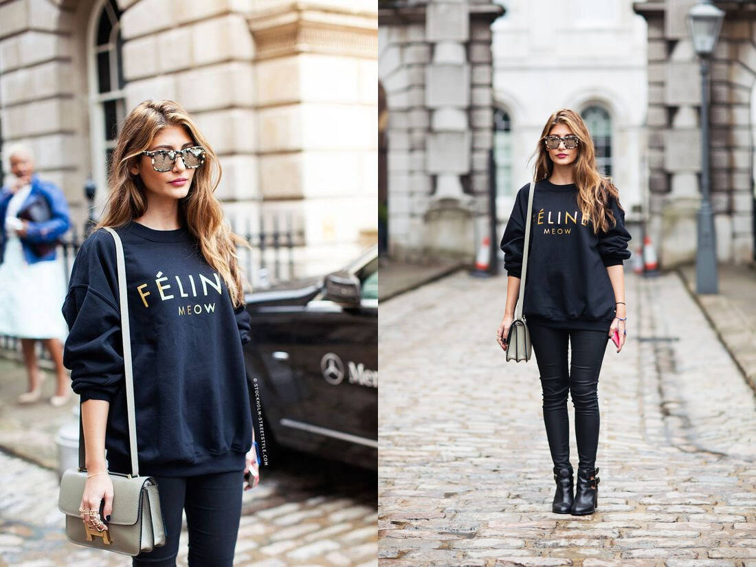 最简洁基础的款式,也是最百搭不会出错的。只要搭配一条牛仔裤、Legging,立马休闲青春气息扑鼻而来。而选择高跟鞋搭配卫衣,则更多了份优雅女人味。