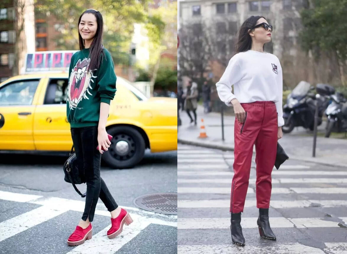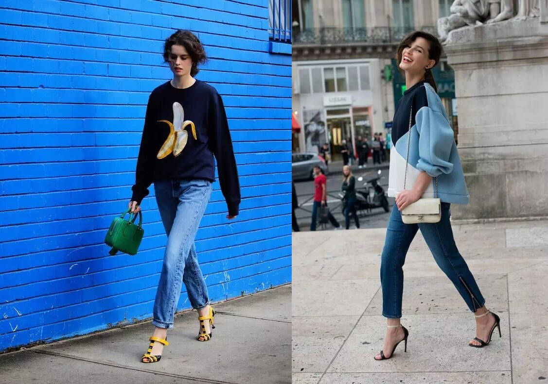 球鞋不再是卫衣唯一可以搭配的鞋款,越来越的成熟时髦女性喜欢用高跟鞋来诠释卫衣。表达出,就算穿着卫衣,我也是最有女人味、最会穿的。