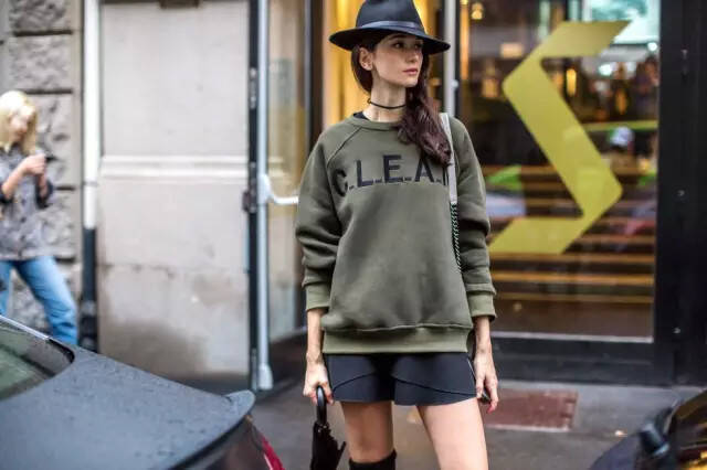 什么?卫衣只能搭配裤装?NO NO NO,是谁告诉你只能搭裤装的,明明它搭配裙子也一样很时髦美丽啊!并且更多了份可爱、邻家姑娘的感觉。拥有一颗少女心的女生们可以选择A字、蓬蓬款的来搭配卫衣。而自带气场的女人们,则可以选择开叉、一步式来体现你们的女王范儿。