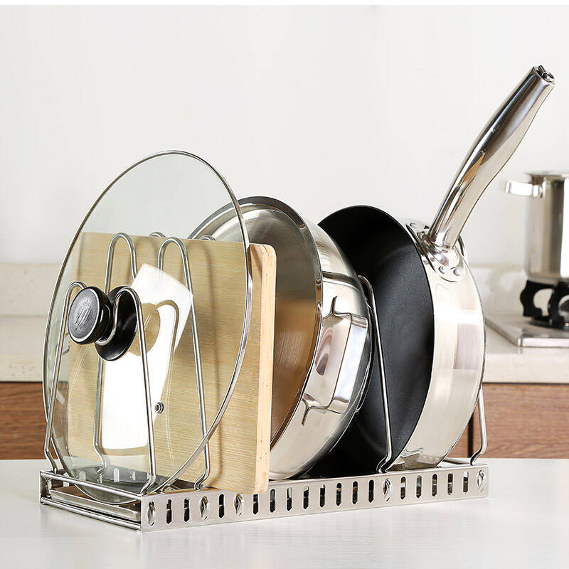 1208S锅盖架304不锈钢厨房置物架收纳架锅架带接水盘可调节