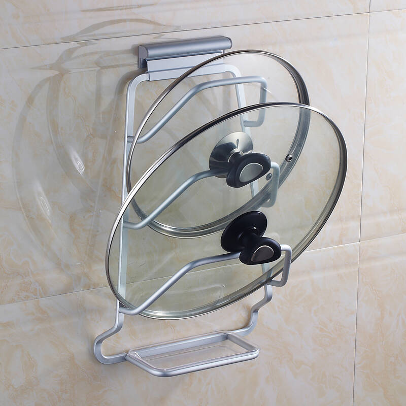【京东超市】千恩千喜 QEQX 太空铝免打孔锅盖架 厨房置物架壁挂 带接水盘 G101-C