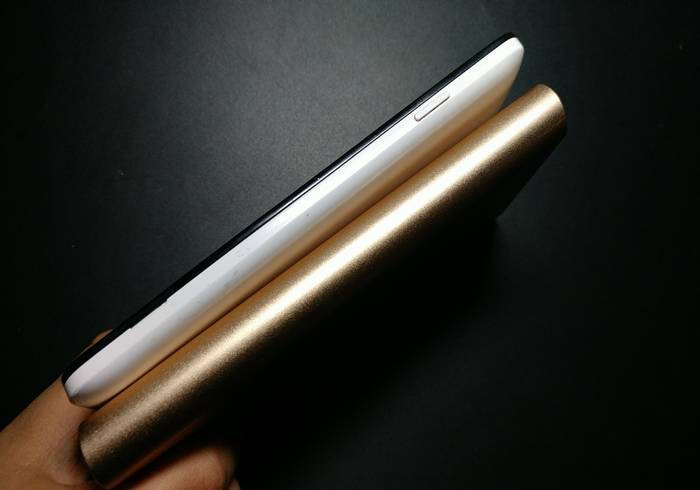 电源为长方形弧边设计,美观大方,规格尺寸为:141x69x14mm,与5英寸的手机大小相当,厚度只有14.2mm,在同类产品中算得上一款比较薄的移动电源。手机和移动电源单手同时持握时,非常轻松。