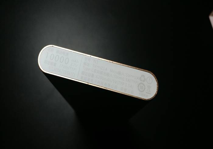 有些人会问,金属外壳和PC外壳的移动电源哪个好?首先从散热方法来说,金属外壳的更容易散热,这样可以延长电芯的使用寿命。其次从防摔方面,金属外壳更坚固。N1移动电源采用金属磨沙外壳,表面细腻平滑,配合土豪金的颜色,使移动电源很上档次。