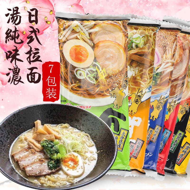 日本进口美贺太marutai九州拉面 熊本豚骨鹿儿岛日式非油炸方便速食拉面 混合7/8包装 七款装