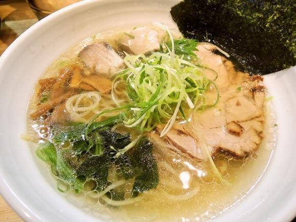 这是在大阪修行的店主在东京所开的人气拉面店。最为知名的盐味拉面是「鲔盐(920 JPY(含税))」。这边的「鲔」,有着关西地方对鲔鱼的特殊称法(shibi)。汤头使用鸡、柴鱼和昆布等熬制,是清爽高雅的清澈高汤。拉面中的配料非常独特,除了有猪肉叉烧以外,再加上鲔鱼半熟炙烧片。因为这个鲔鱼呈现半熟状态,请在鲔鱼还没因为高汤的热度变硬前,赶紧享用喔!