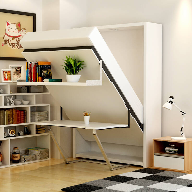 这款折叠床兼具书柜、置物柜、电脑桌与床与一体,白天的电脑桌就是晚上的床,这样一来空间利用率大大提升。外表简洁大方,适合多种装修风格。不用的时候收起来十分的方便,安装也很简单。