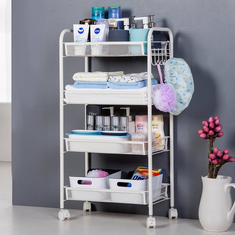 小美(XMEE) 置物架厨房收纳架客厅厨房多用家居储物架 象牙白四层 篮网层车