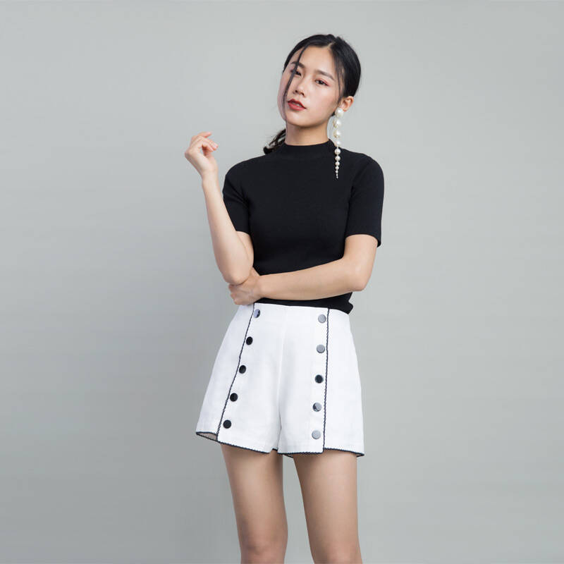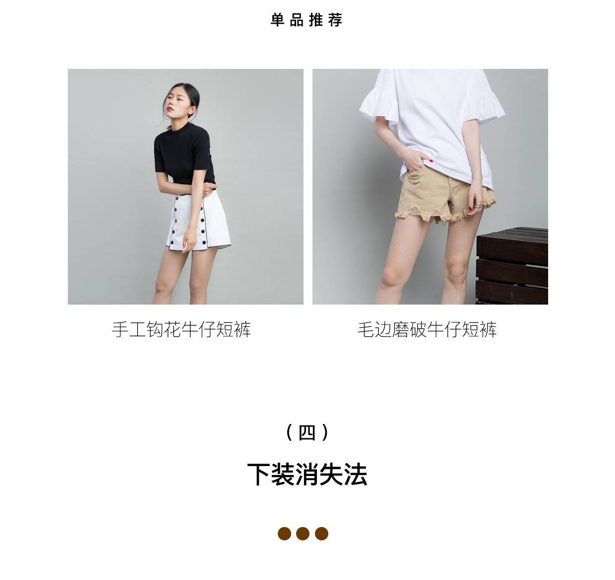 ICY钩花装饰高腰短裤2017春季新款女装潮 甜美修身花边裤 白色 S