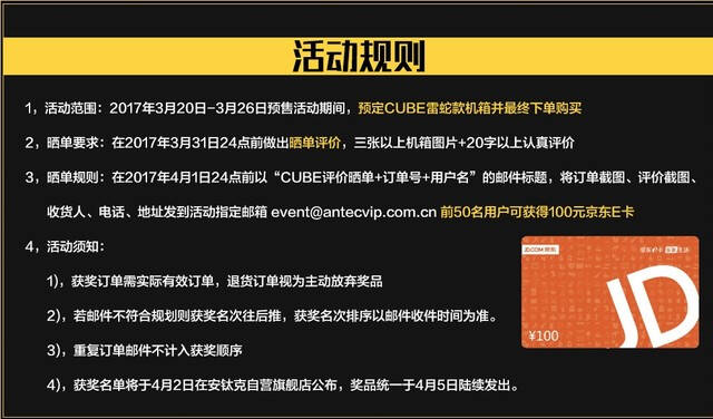 又是一年一度的春季促销季,这次安钛克携最超值的产品在京东为广大玩家带来实惠,其中不仅有爆款直降产品,还有安钛克Cube雷蛇版机箱新品上市,只需1元定金即可抵300元,并且前50名玩家好评晒单送100元京东E卡,可以说直降400元,实惠多多,心动的玩家抓紧来看看吧。