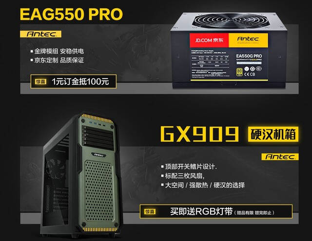 活动期间一款安钛克VP550电源实行限时秒杀的活动,只需289元即可拿下这款性能游戏电源,同时安钛克承诺两年换新,只要这款电源有问题,只换不修,非常超值。