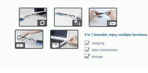PrEttiO是外在手环,靓丽的外表,但是它是可拆卸,里面包含了U盘、线充、手机各种接口。且精致小瞧,可真实的穿戴,彰显时尚。