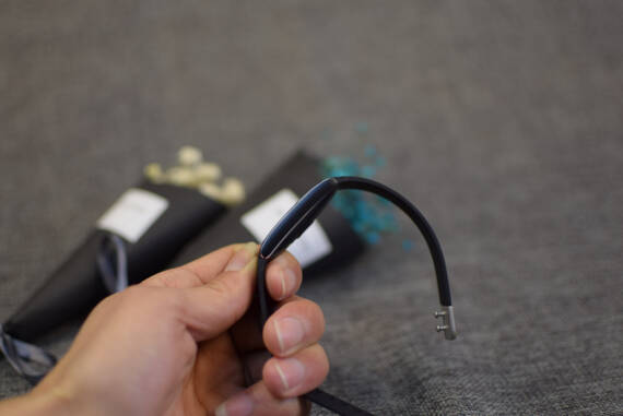 埃微蛋卷手环的腕带采用的是TPU材质,毕竟这种材质在韧性以及柔软度方面优点还是挺大的,其佩戴触感很舒服,透气性也很好。另外,采用了按扣式设计,腕带上设计了12个扣孔,这样可根据手腕大小来自由调节腕带。