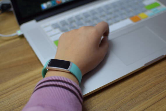 在手环主体的背面为心率监测传感器以及磁吸式充电接口,其采用最常用的心率测量方式,紧贴着手腕就可以通过光电容积脉搏波描记法进行心率监测,当然在进行心率监测时会发出绿光,这样即可实时监测心率数据。续航方面,埃微蛋卷手环内置了一块55mAh电池,基本上能达到一周的续航使用体验。