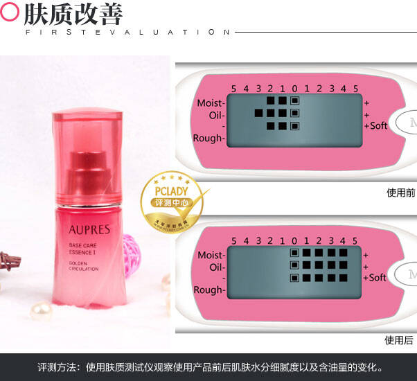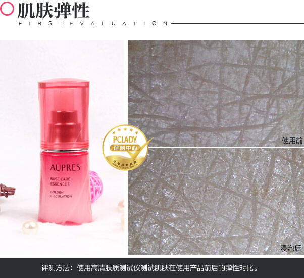 评测结果:从上图可以看到,使用产品前,肌肤的纹理比较深,也比粗糙,弹性表现较差,使用产品后,肌肤的水嫩度得到明显的改善,纹理变浅,弹性也有所增加,说明本产品蕴含的疏导肌肤循环能力能让肌肤即时恢复水嫩弹滑,健康柔嫩。