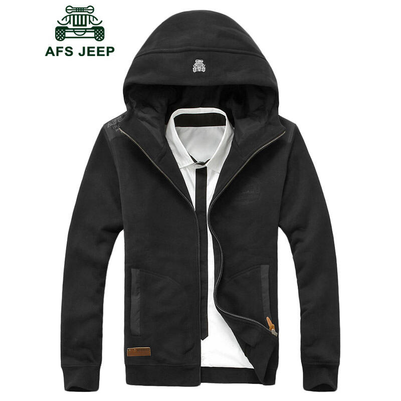 战地吉普AFS JEEP男士卫衣2016春季新款卫衣外套连帽卫衣外套 黑色 M