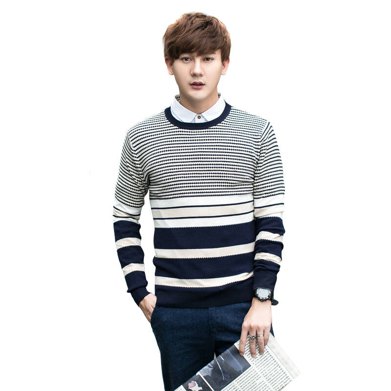 Magicpower 男士毛衣basic系列条纹男士毛衣 MGW0743402 蓝白条 XXL