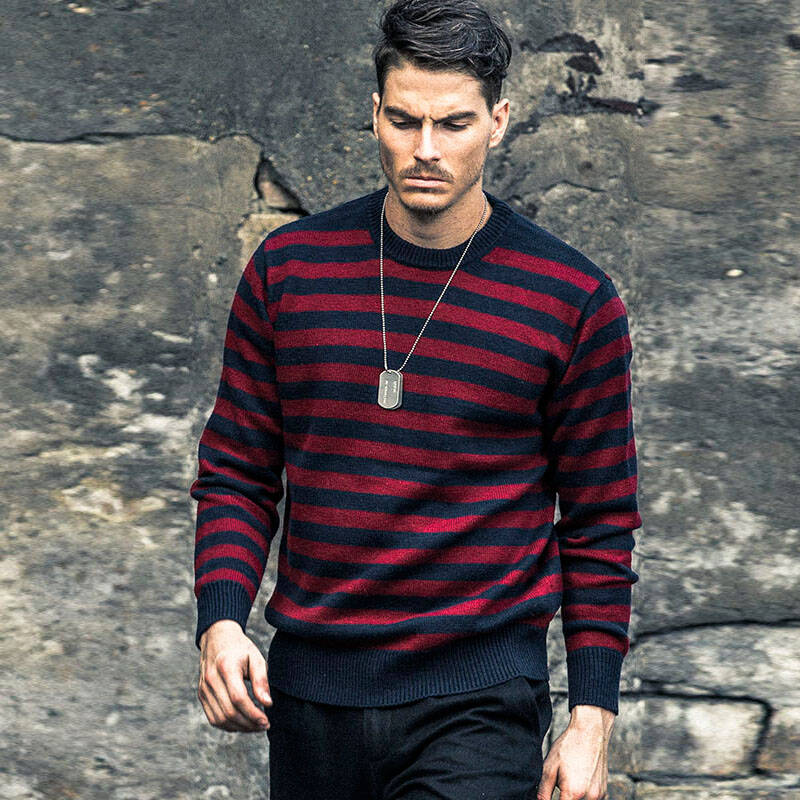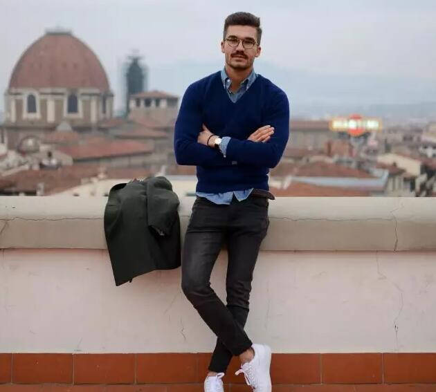 男生的毛衣虽然款式不多,但是多在搭配上下功夫也能完成很多造型。纯色的款式同样属于入门款,适合任何场合。