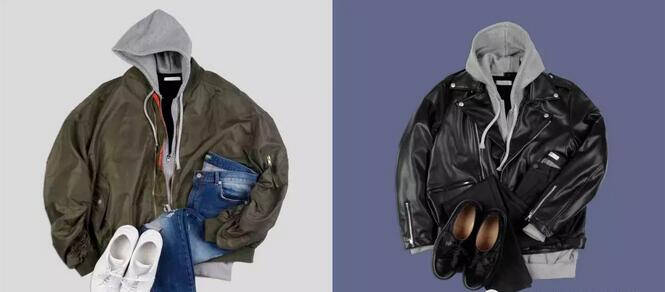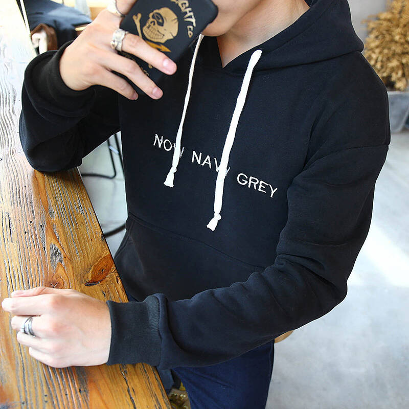 作为内搭,连帽灰色卫衣是运用最广泛的款式。连帽卫衣比较街头风,所以昨天也推荐了用连帽卫衣搭配教练夹克是最佳方案。