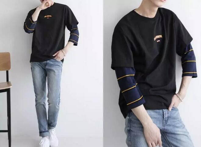 你跟潮流的距离就差那露出来的一截白T一件内搭的T恤留白或许并不明显,如果你想把这波逼装的彻底,为什么不试试多层次的搭配,更多层次的下摆无疑会让这种慵懒随性的风格表现的更加明显。不同颜色的分层给人直观的冲击。
