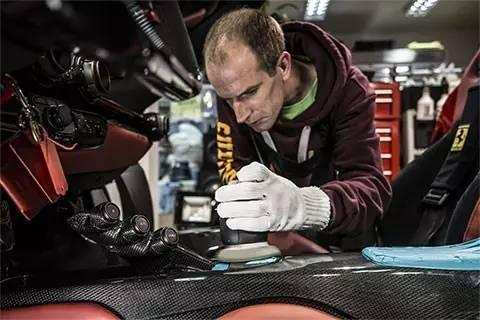 搞了6层后,他还会用手再上一次蜡。根据Paul Dalton的说法,手的温度跟触感才可以让蜡平均地贴在车身上。