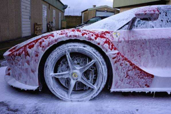 洗车泡沫则是美国进口的专业中性洗剂,秒杀市面的酸性洗剂,每公升720元。不会损伤超跑娇嫩的肌肤。