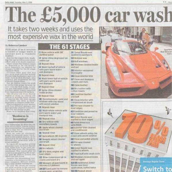 五万洗一次车,就包含61道工序,全都由Paul Dalton本人手工完成。