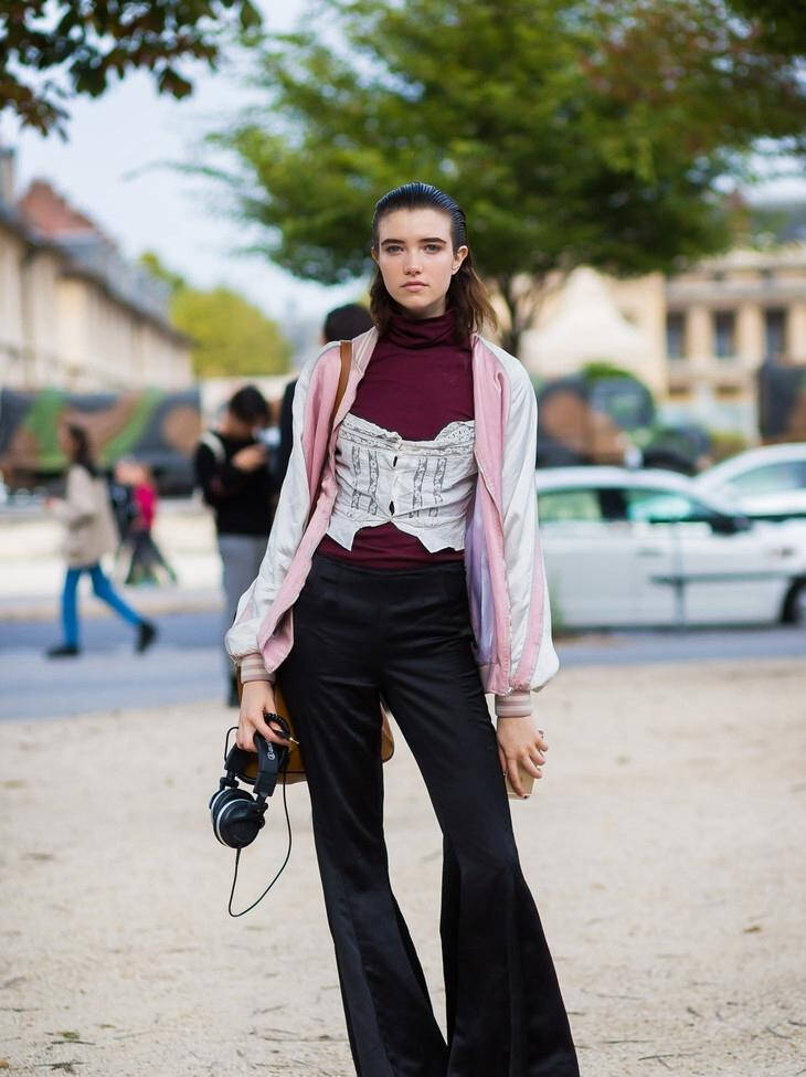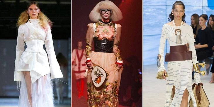 复古的束腰腰封这一季也被重新搬上T台,并经过皮革面料来替代支架与蕾丝款式,打造符合现代审美的古典趋势,束出纤细腰身的视觉效果。并已成为一众时装精的必备,可以说是街拍大热单品。