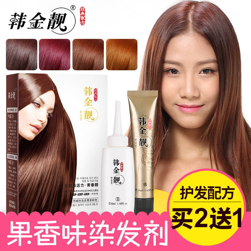 韩金靓染发剂酒红色栗棕色亚麻色黑色天然彩色染发霜植物染发膏100ml 栗棕色55.0