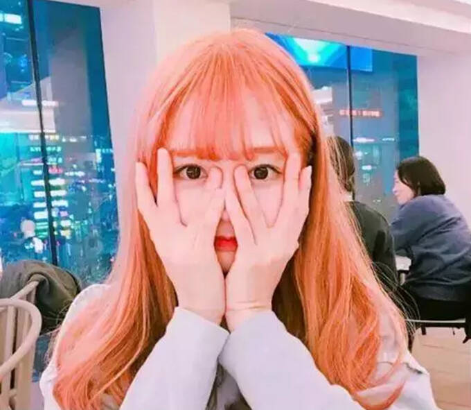 ▍很卡哇伊的糖果色系染发,抢眼的橙红色,显白又减龄,发梢微卷配上轻盈的空气刘海,很有少女学生气息,鲜亮的感觉在春夏还蛮适合的。▼