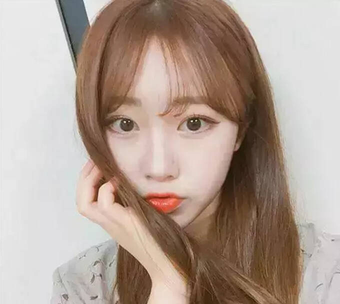 ▍萌妹子们必备的空气刘海大长发,配上棕色系的发色,时髦又显气质,搭薄刘海,衬得肤色白白嫩嫩的,是很显少女感的一款发型。▼