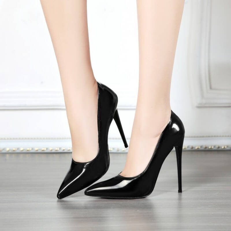 Baken巴肯 欧美春夏高跟鞋浅口细跟女鞋34码尖头漆皮性感夜店工作鞋 黑色 34