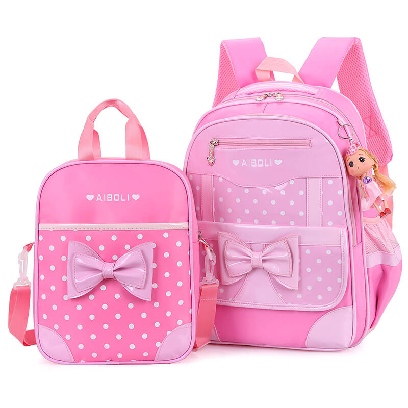 精灵城堡女孩双肩书包韩版书包1-6年级小学生 减负护脊防水可爱 粉红色 有补习包