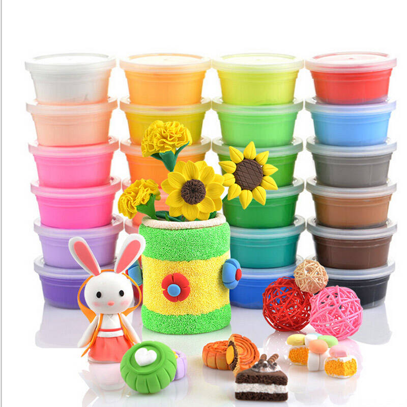 DIY沙儿童玩具粘土,安全环保无毒彩泥,颜色鲜艳质地轻柔有弹性,手感清爽不油腻,爱护孩子稚嫩肌肤,柔韧性好不粘手,可以更好地塑型,锻炼了孩子的手眼协调性和艺术天赋。