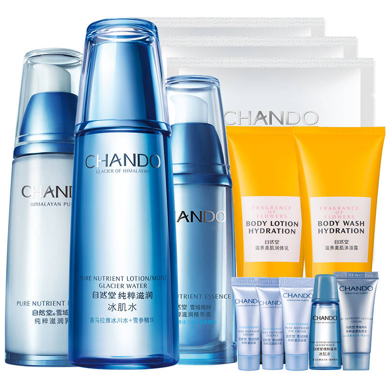 【京东超市】自然堂雪域水乳精套装(冰肌水(清润)160ml+乳液120ml+精华液40ml+五件套+面膜*3+身体礼盒)