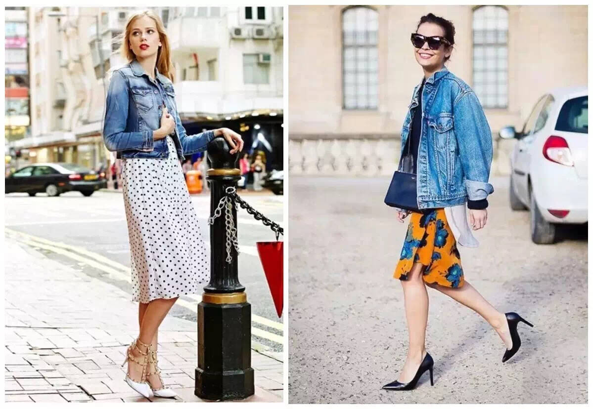 天气逐渐转暖,可以准备一件春日出游的裙子啦!搭配牛仔外套是一个绝佳的选择,这两个休闲单品的组合超级有活力,还有减龄的效果,你看时尚博主们的最新的街拍:身着印花连衣裙外搭牛仔外套和高跟鞋,活力十足。