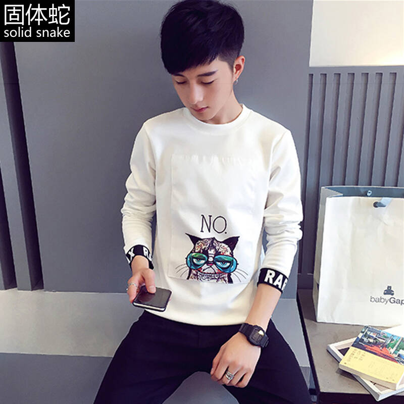 固体蛇 长袖T恤男士春季韩版圆领印花修身打底衫 白色长袖 L
