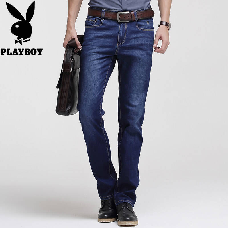 花花公子牛仔裤弹力男 2017春夏季新品青年修身直筒商务休闲男士牛仔长裤子 经典牛仔蓝 (春款) 31(170/78A)2尺4