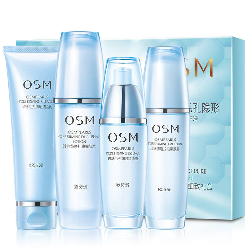 【京东超市】欧诗漫 OSM 珍珠毛孔清透细致礼盒(洁面乳+细肤水+嫩肤乳+精华露)