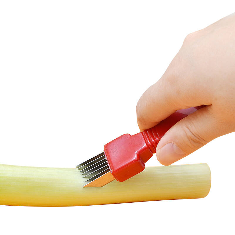 日本进口葱丝刀,七片刀片均匀的设计,切葱丝、断葱,简单易用。刀片带有安全帽,既能保持清洁,又有安全措施。处女座主妇必备神器,协助主妇切出粗细均匀,装盘点缀,色香味俱全。